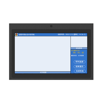 1. 对会见活动进行统筹安排,权限设定,视频切换等操作。铝合金边框,15英寸触摸显示屏,1080P高清视频。 2. 提供高清录制,全高清录制的视频可以存档备查。 3. 可以与数据化病房医护呼叫管理系统联网,实现统一管理和控制,最大程度的达到信息资源的共享和管理控制,以及降低院方施工成本。