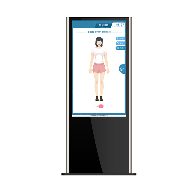 1. 采用一体化设计。 2. 显示软件可以根据用户的需求灵活定制显示画面效果,字幕形式,颜色风格等。 3. 支持滚动或翻页显示排班信息。支持显示日期时间信息。 4. 支持全屏或分区域播放多媒体视频文件。 5. 可在屏幕下方滚动显示的礼貌用语或其它通知类即时文字信息等。 6. 可更改显示内容的字体、大小、颜色及位置。 7. 可自定义显示背景图片,显示界面风格、样式可根据医院需求定制。 8. 显示方式:竖屏,可单独显示,可整体显示画面。