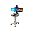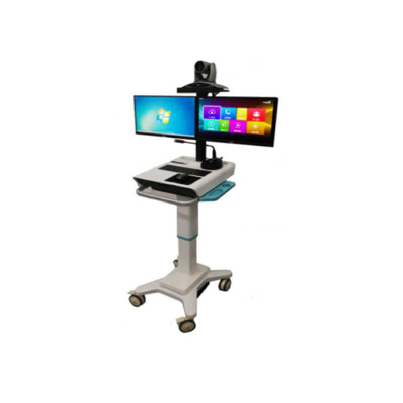 1. 医用级不锈钢或高强度铝合金材质,稳固防锈, 静音万向轮,高度符合人体工学的推手,线缆管理整洁,避免绊倒。 2. 双22英寸高清医疗显示器,色彩准确,用于显示患者影像资料和视频画面。 3. 含高清、自动对焦、带隐私盖的主摄像头。全向降噪麦克风,高保真扬声器,支持回声消除,确保对话清晰。 4. 集成DVI、VGA、HDMI等接口,可方便连接床旁监护仪、便携式超声、电子听诊器、手持裂隙灯、耳鼻喉内镜等专业设备,将实时生理信号和影像分享给远端专家。