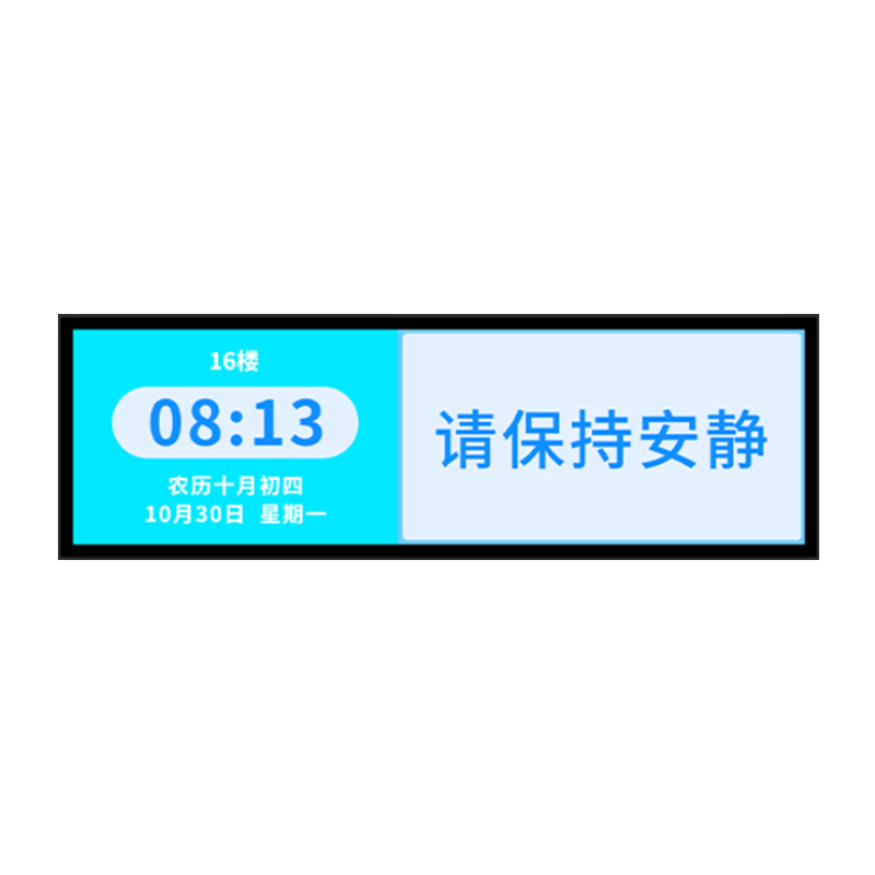 1. 25英寸高清液晶走廊屏。 2. 分辨率1920*1080高清显示。 3. 支持呼叫联动显示,当床头主机或卫生间发起呼叫时,高清液晶走廊屏联动显示呼叫。 4. 无呼叫信息时,可显示系统时间或系统所发布的其它信息,多个分机呼叫时,可循环显示呼叫信息。 5. 可接收智能护理交互系统发送消息。