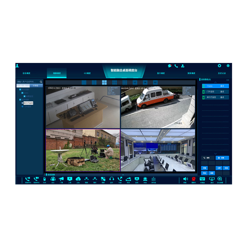 1. 视频通话:视频话机间的视频通话,与智能APP的视频通话。 2. 视频回传:通过现场各种智能设备,实现现场视频的回传。 3. 视频会商:各终端间的视频会议能力,与第三方视频会议组。 4. 视频分发:将各种视频源分发到不同的显示设备上,方便指挥调度时现场情况的把握。 5. 公网集群对讲:单呼,组呼,会议,SOS,临时组。 6. 对讲机互通:(PDT、DMR、TETRA、常规对讲机,短波电台,航空电台)。 7. 电话系统接入:固话,手机,IP电话,卫星电话。 8. 播系统接入:IP广播,传统广播,SIP广播,会议调音台。 9. 地图引擎:在线地图,离线地图,三维地图。 10. 地图调度:地图上操控对讲,语音通话,视频通话,调看现场视频,发送消息,电子围栏,选等操作。 11. 定位数据:轨迹回放,位置上报,信息标注,数据导出。 12. 文字消息:支持以文字的方式,向被调度人员智能终端进行交互。 13. 多媒体消息:支持以语音、视频、图片的方式与被调度人员进行交互。 14. 文件消息:支持发送各种格式的文件方式与被调度人员进行交互。