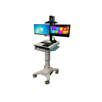 1. 医用级不锈钢或高强度铝合金材质,稳固防锈, 静音万向轮,高度符合人体工学的推手,线缆管理整洁,避免绊倒。 2. 双22英寸高清医疗显示器,色彩准确,用于显示患者影像资料和视频画面。 3. 含高清、自动对焦、带隐私盖的主摄像头。全向降噪麦克风,高保真扬声器,支持回声消除,确保对话清晰。 4. 集成DVI、VGA、HDMI等接口,可方便连接床旁监护仪、便携式超声、电子听诊器、手持裂隙灯、耳鼻喉内镜等专业设备,将实时生理信号和影像分享给远端专家。